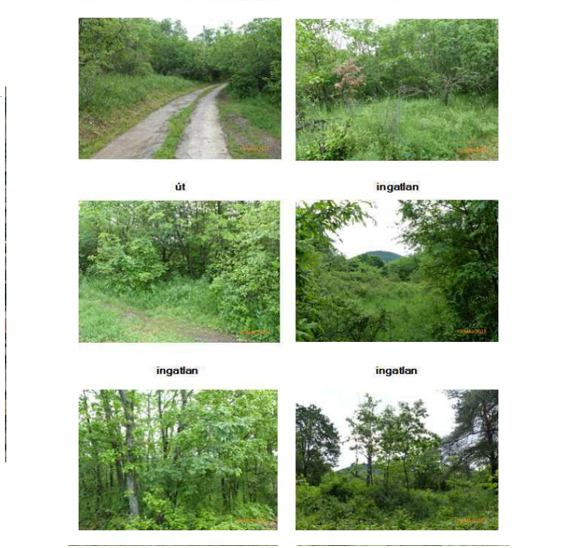 Az ingatlan gondozatlan, bokros, fás terület, szabálytalan sokszög alakú, részben kerítéssel határolt.